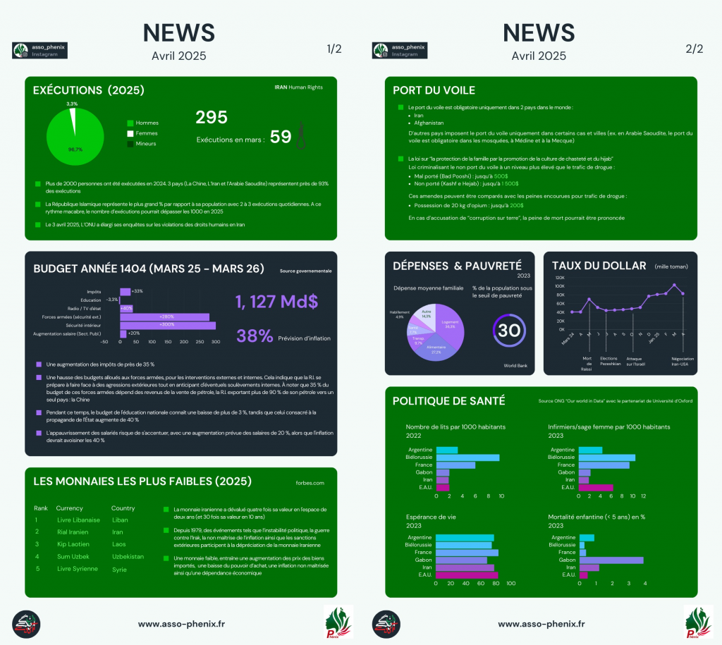 La seconde lettre de l’association Phénix revient sur les événements importants du mois d’avril concernant la vie des Iraniens :